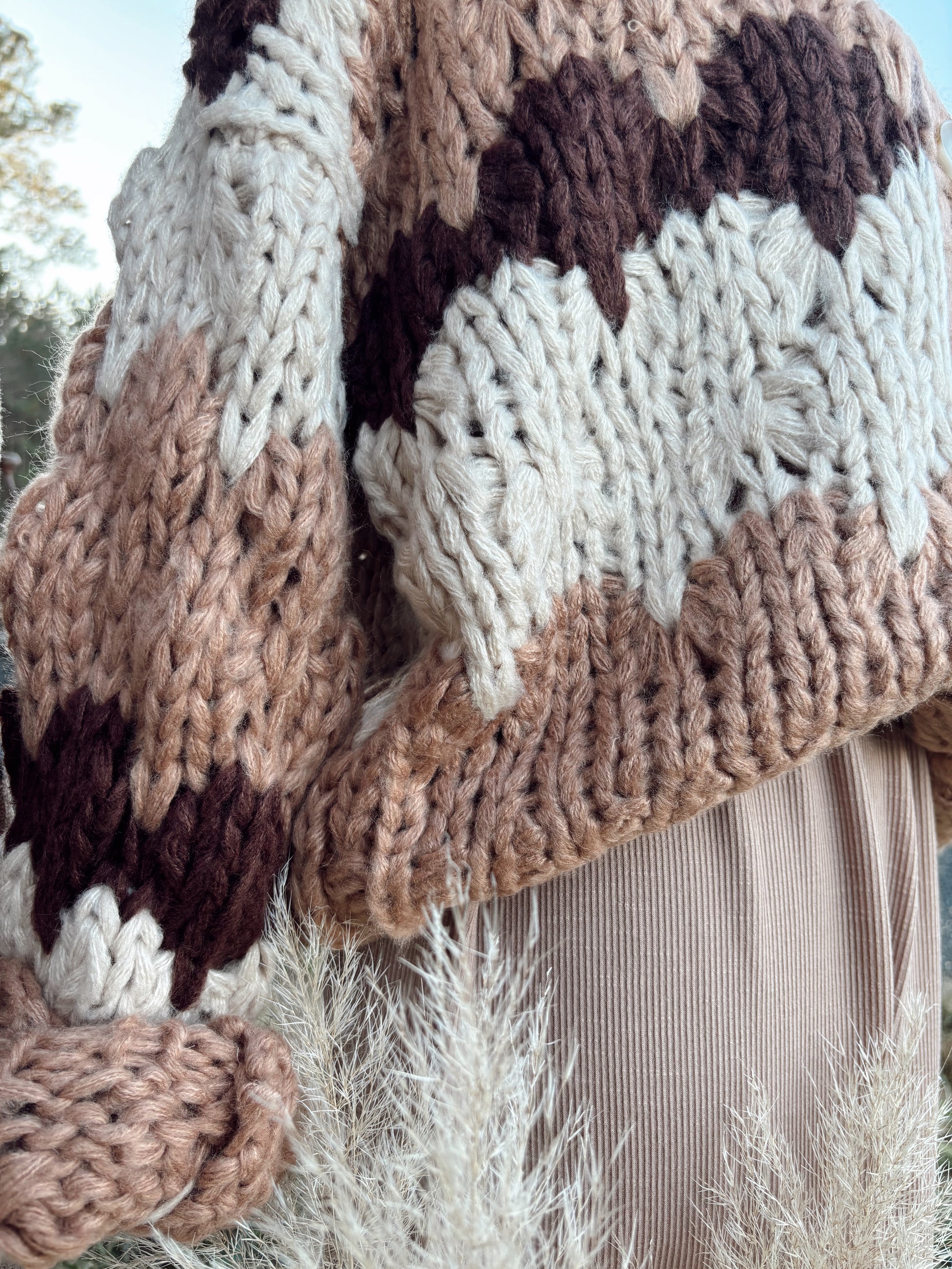 ✮ The Annie Chunky Knit Cardigan features a chevron pattern and balloon sleeves in a soft, oversized fit. Perfect for layering over your favorite outfits! Easy to wear and versatile enough for any occasion.