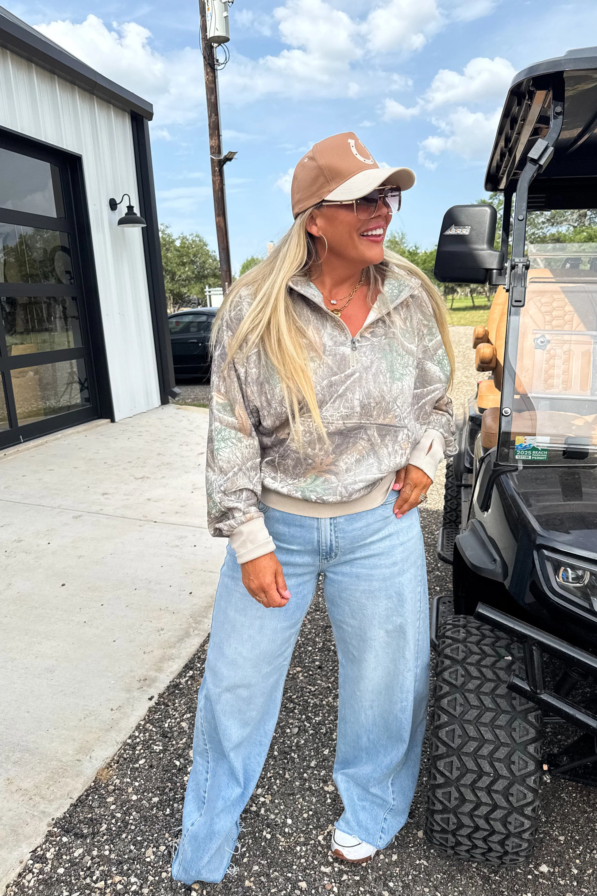 ✮ Our cute new camo washed hoodie offers a perfect blend of comfort and practicality. Crafted from high-quality fabric, this pullover has a relaxed fit and comes with a front pocket, zip up neckline and hoodie. Semi crop length (covers belly and past top of waist!) Not too short or too long! Thumbholes are present!